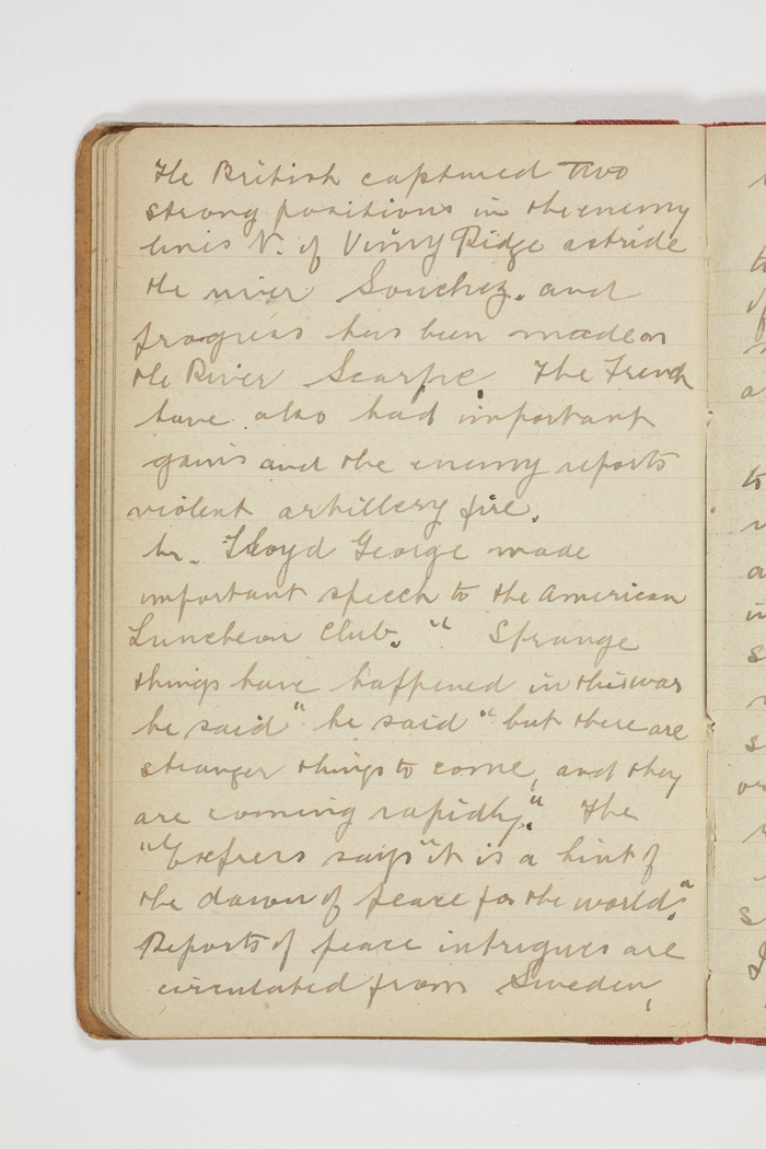 Mr Lloyd George made an important speech to the American Luncheon Club. "Strange things have happened in this war" he said "but there are stranger things to come, and they are coming rapidly". The Express says "it is the hint of the dawn of peace for the world". Reports of peace intrigues are circulated from Sweden, Switzerland and Rome.
