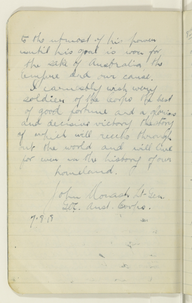 to the utmost of his power until his goal is won for the sake of Australia, the Empire and our cause.