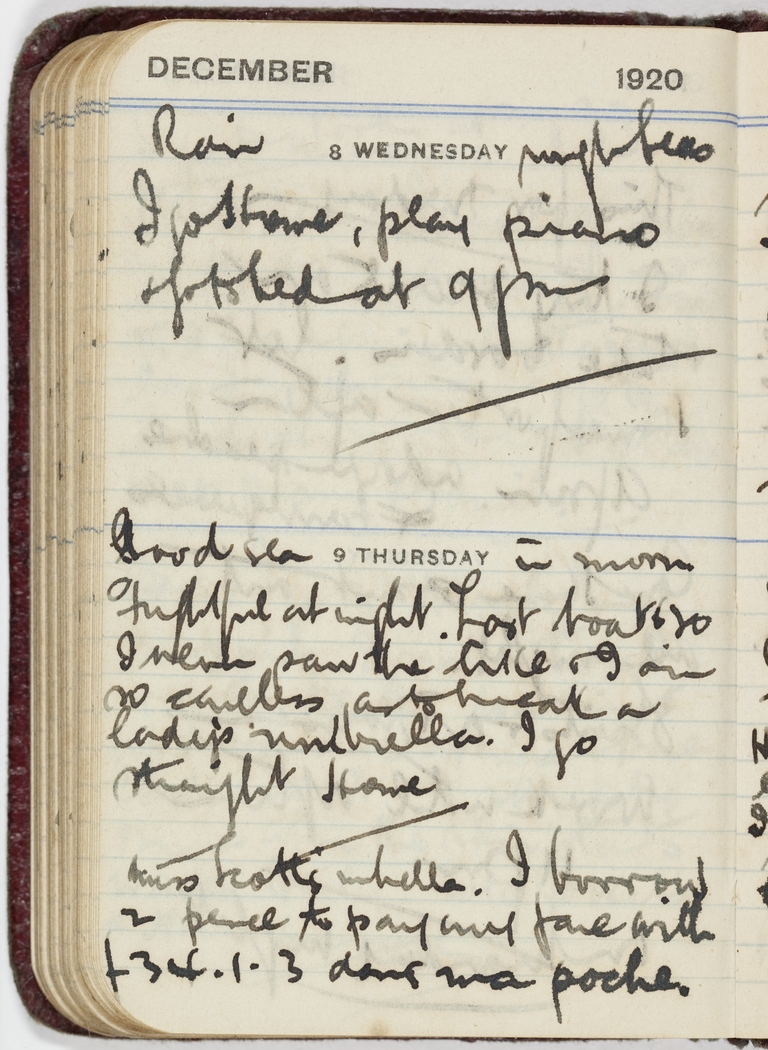 Miss Scott's umbrella. I borrow 2 pence to pay my fare with £34.1.3 dans ma poche.