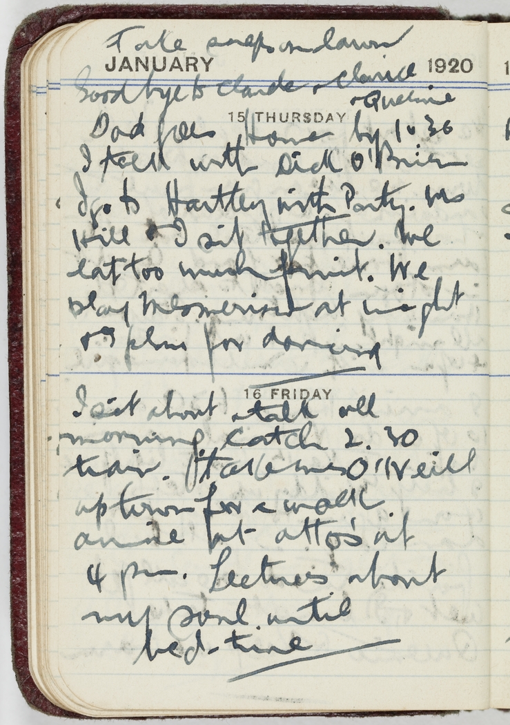 I sit about & talk all morning. Catch 2.30 train. take Mrs O'Neill up town for a walk. arrive at  otto's at 4pm. Lectures about my soul until bed-time
