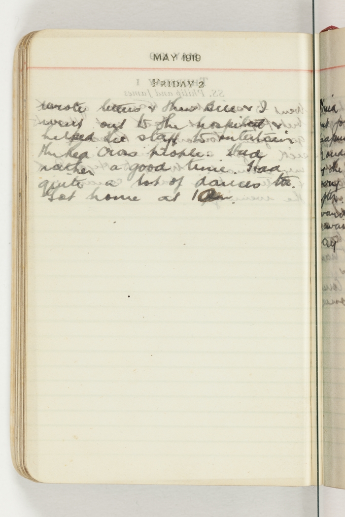 Wrote letters & then Bill & I went out to the hospital & helped the staff to entertain the Red Cross people. Had rather a good time. Had quite a lot of dances too. Got home at 1 am.