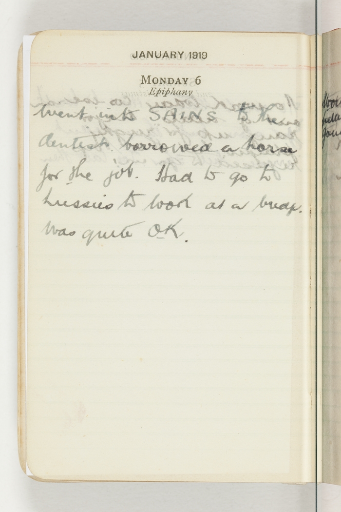 Went into Sains to the dentist borrowed a horse for the job. Had to go to Lussies to look at a bridge. Was quite OK.