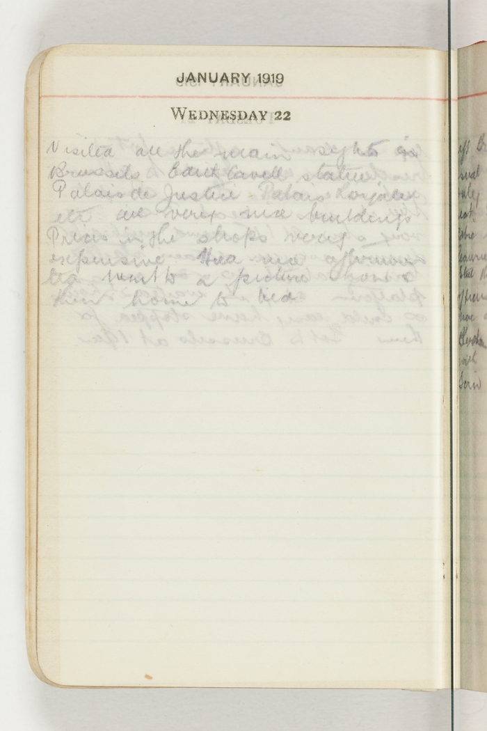 Visited all the main sights in Brussels Edith Cavell statue, Palais de Justice, Palais Royale etc. All very nice buildings Prices in the shops very expensive. Had nice afternoon tea. Went to a picture show & then home to bed.