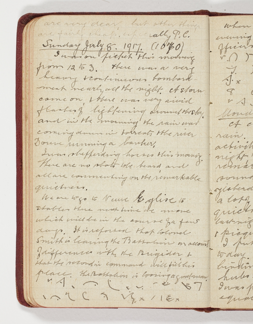 I was on picquet this morning from 12 to 3, there was a very heavy & continuous bombardment nearly all night. A storm came on & there was very vivid flashes of lightening around the sky, and in the morning the rain was coming down in torrents & the river Douve running a banker.