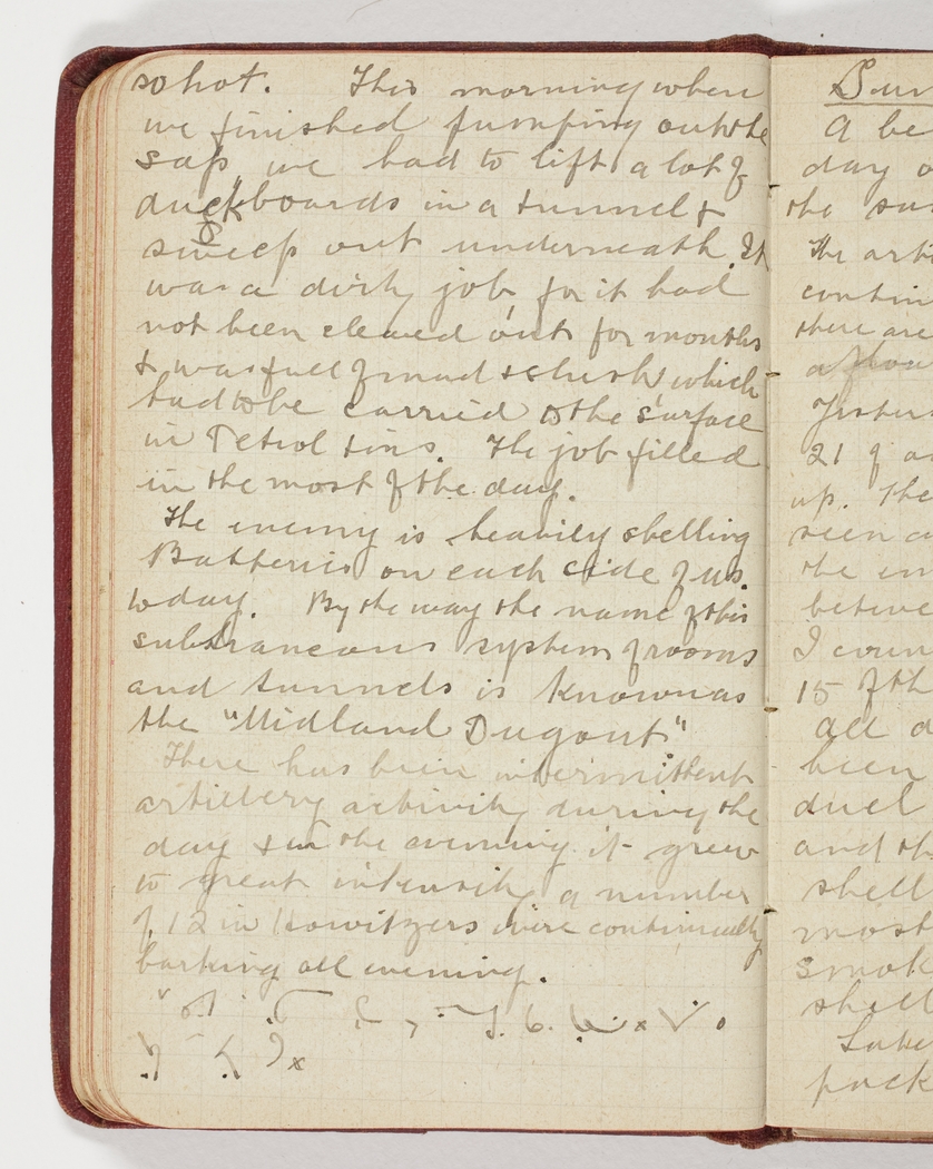 The enemy is heavily shelling Batteries on each side of us today. By the way the name of this subtraneous system of rooms and tunnels is known as the "Midland Dugout".