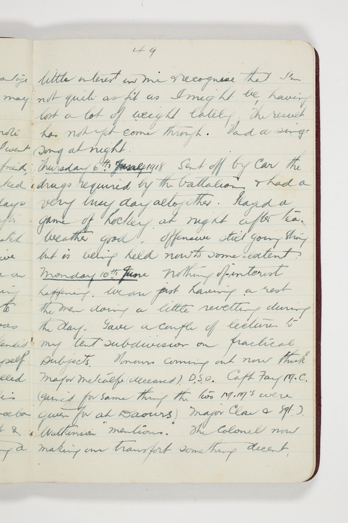 Honours coming out now think Major Metcalf (deceased) D.S.O. Capt Fay M.C. (gained for same thing the two M.M's were given for at Daours) Major Close & Sgt I. Watkinson "Mentions". The Colonel now making our transport something decent,
