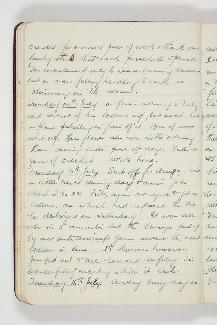 credit for a smart piece of work & thank our lucky stars that each parachute opened. 'Tis excitement only to see a burning balloon but a man falling headlong to earth is stunning in its sorrow.