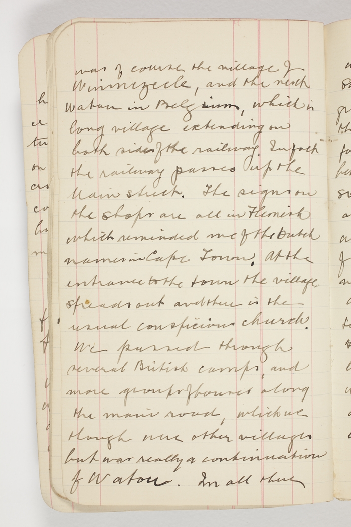 was of course the village of Winnezeele, and the next Waton in Belgium, which is long village extending on both sides of the railway. In fact the railway passes up the Main street. The signs on the shops are all in Flemish which reminded me of the Dutch names in Cape Town. At the entrance to the town the village spreads out and there is the usual conspiciuous church.
