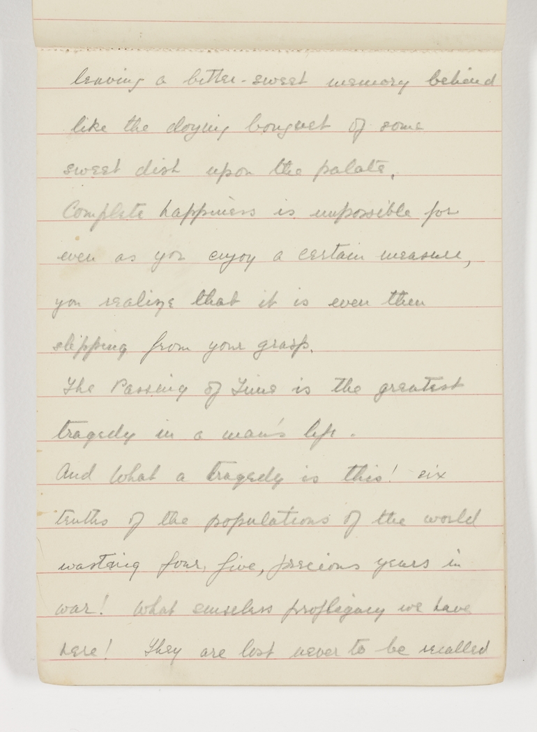 And what a tragedy is this! six tenths of the populations of the world wasting four, five, precious years in war! What senseless profligacy we have here! They are lost never to be recalled