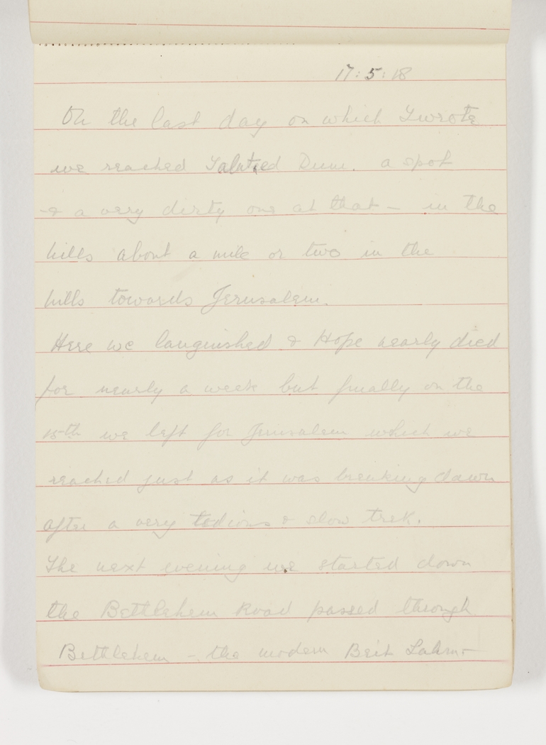 On the last day on which I wrote we reached Talut ed Dune, a spot - & a very dirty one at that – in the hills about a mile or two in the hills towards Jerusalem.