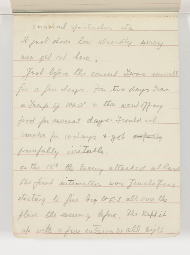 Just before the concert I was unwell for a few days. For two days I ran a temperature 102-3° & & then went off my food for several days: I could not smoke for 10 days & got awfully painfully irritable.