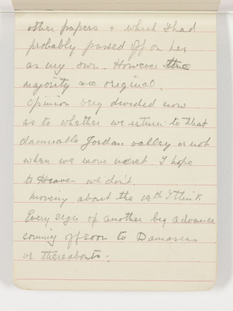 Opinion very divided now as to whether we return to that damnable Jordan valley or not when we move next. I hope to Heaven that we don't.