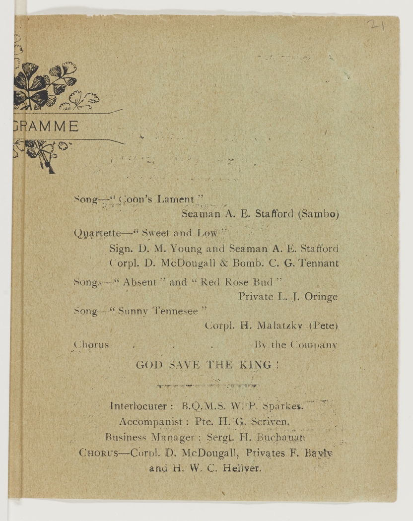 Song - "Absent" and "Red Rose Bud" - Private L. J. Oringe