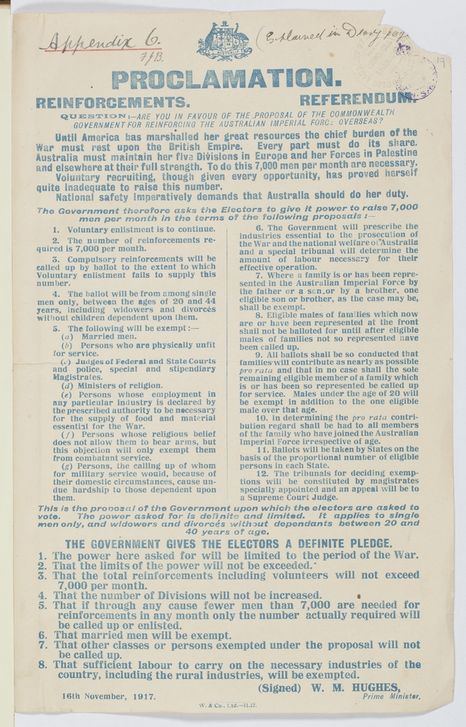 [Australian Government proclamation to support the Reinforcements Referendum, dated 16 Nov. 1916]