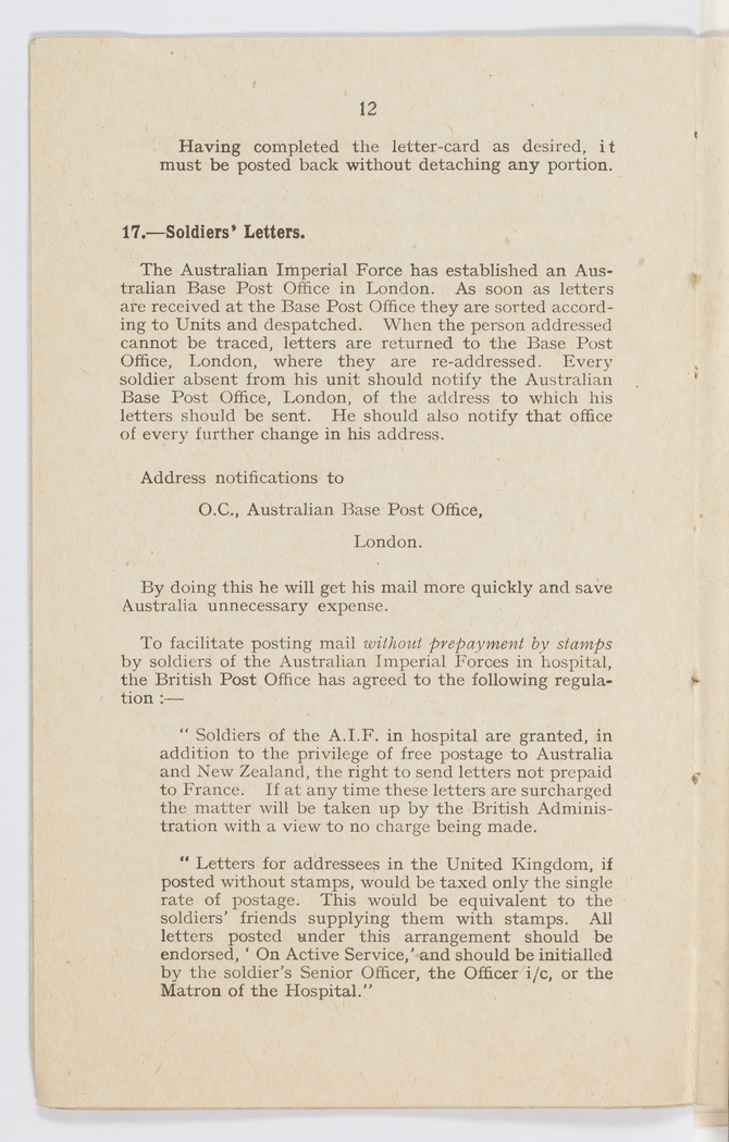 [INFORMATION FOR MEMBERS OF A.I.F. IN UNITED KINGDOM. Contd.]
