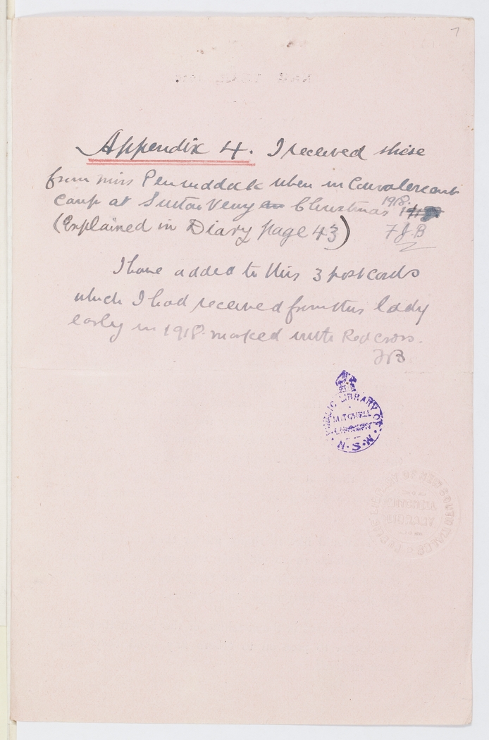 Appendix 4      I received these from Miss Penrudduck when in Convalescant Camp at Sutton Veny Christmas 1918 (Explained in Diary page 43) FJB