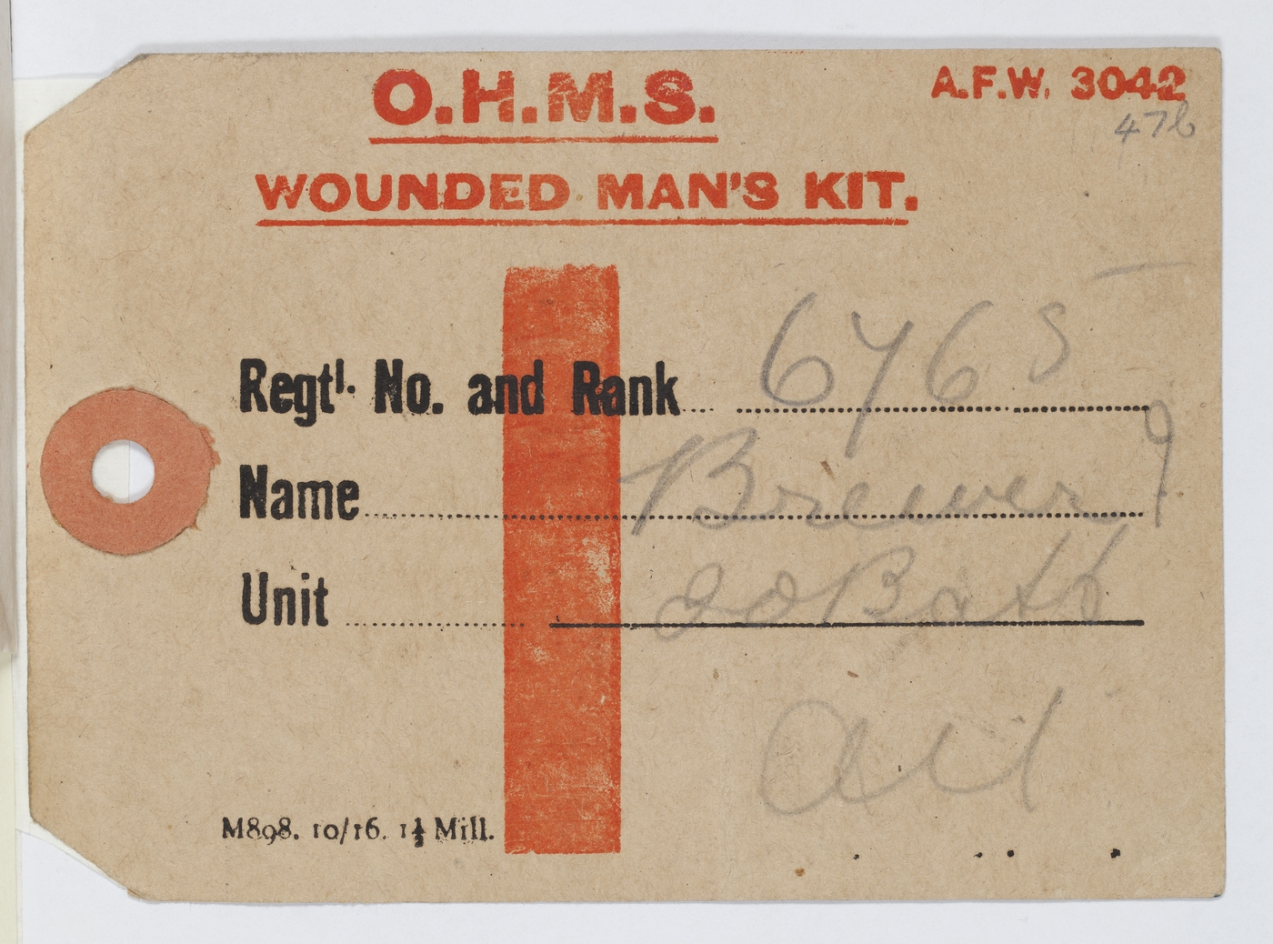 Regtl. No. and Rank - 6765Name - BrewerUnit - 20 Batt