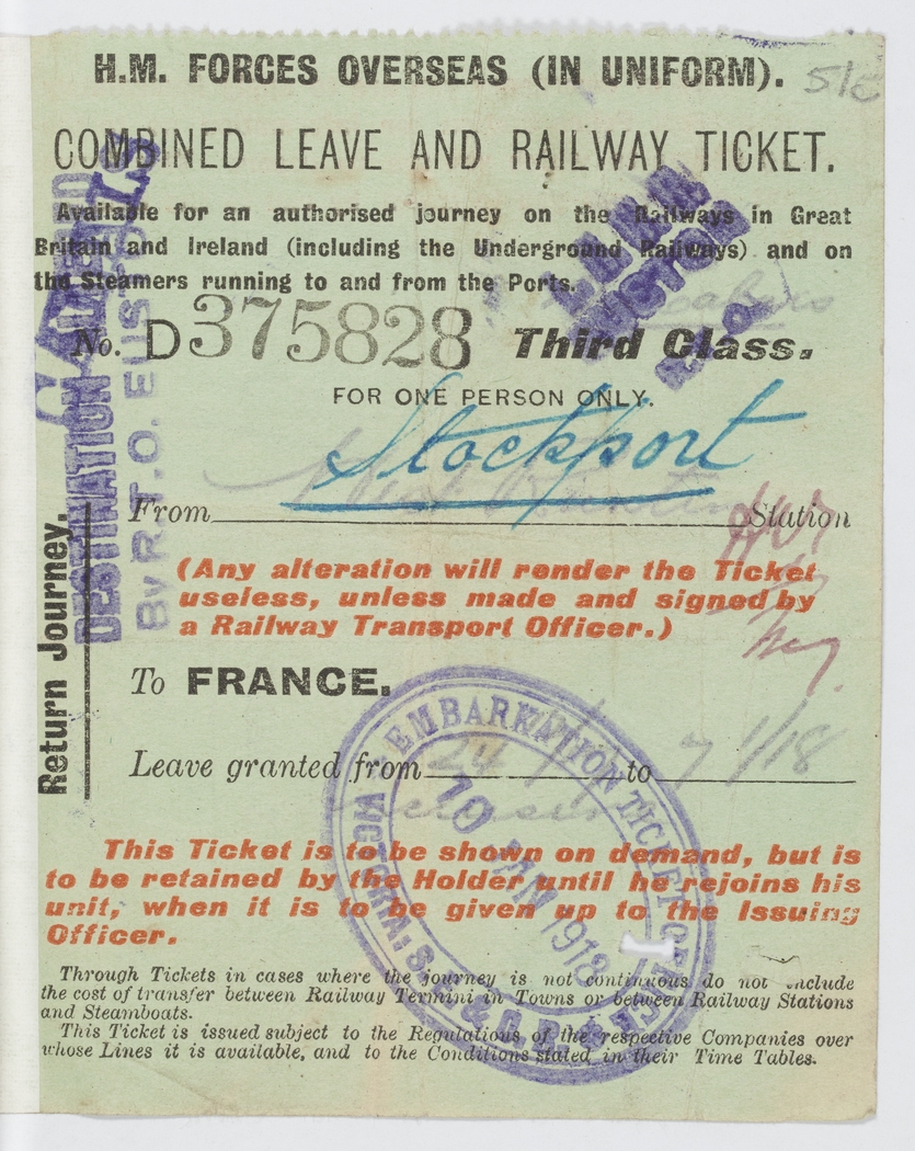 H.M. Forces Overseas (In Uniform)Combined Leave and Railway Ticket