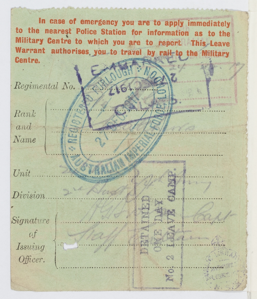 [Back of Leave Ticket on previous page]
