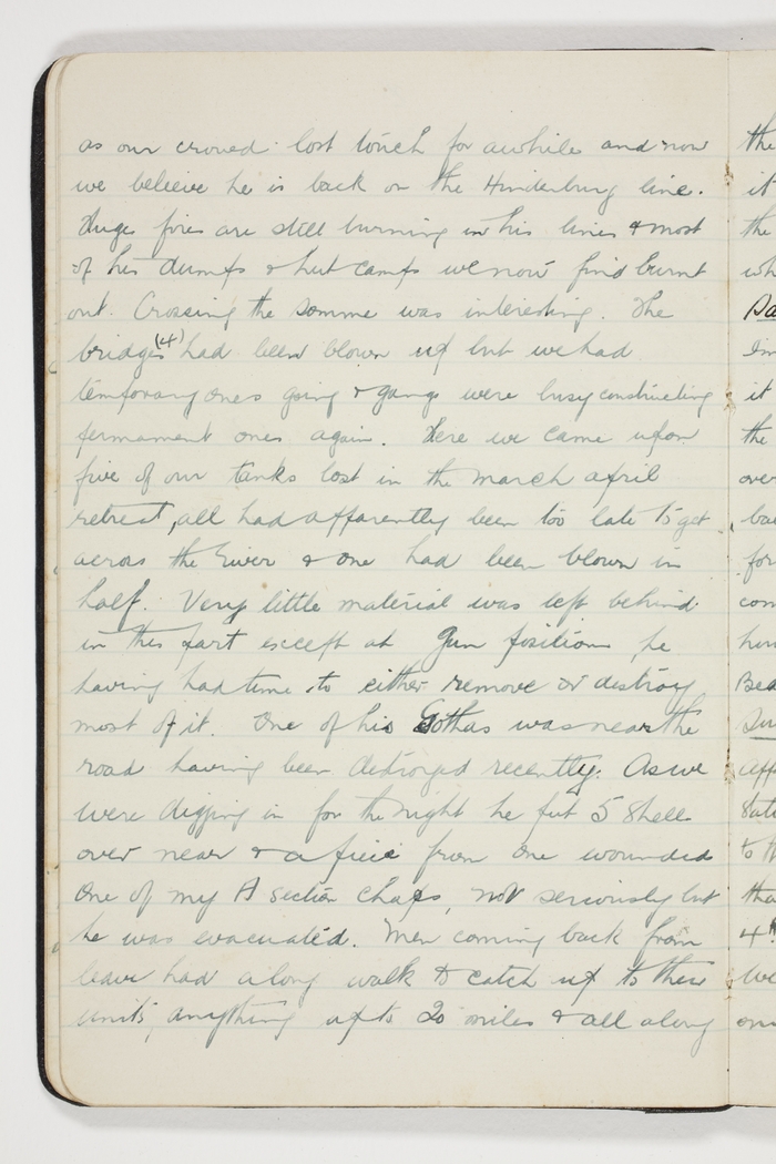 Monday 9th Sept. Visited the 8th.&did some reading of Charles Lamb essays during the morning. Afternoon walked to "Bouvincourt & Estrees",5 miles walk very interesting, visited enemy dumps, aerodromes etc etc & picked up a couple of souvenirs. Our division moving out today, we will probably go to-morrow, in the meantime we are having a splendid rest. Mail from Aussie in to-day.