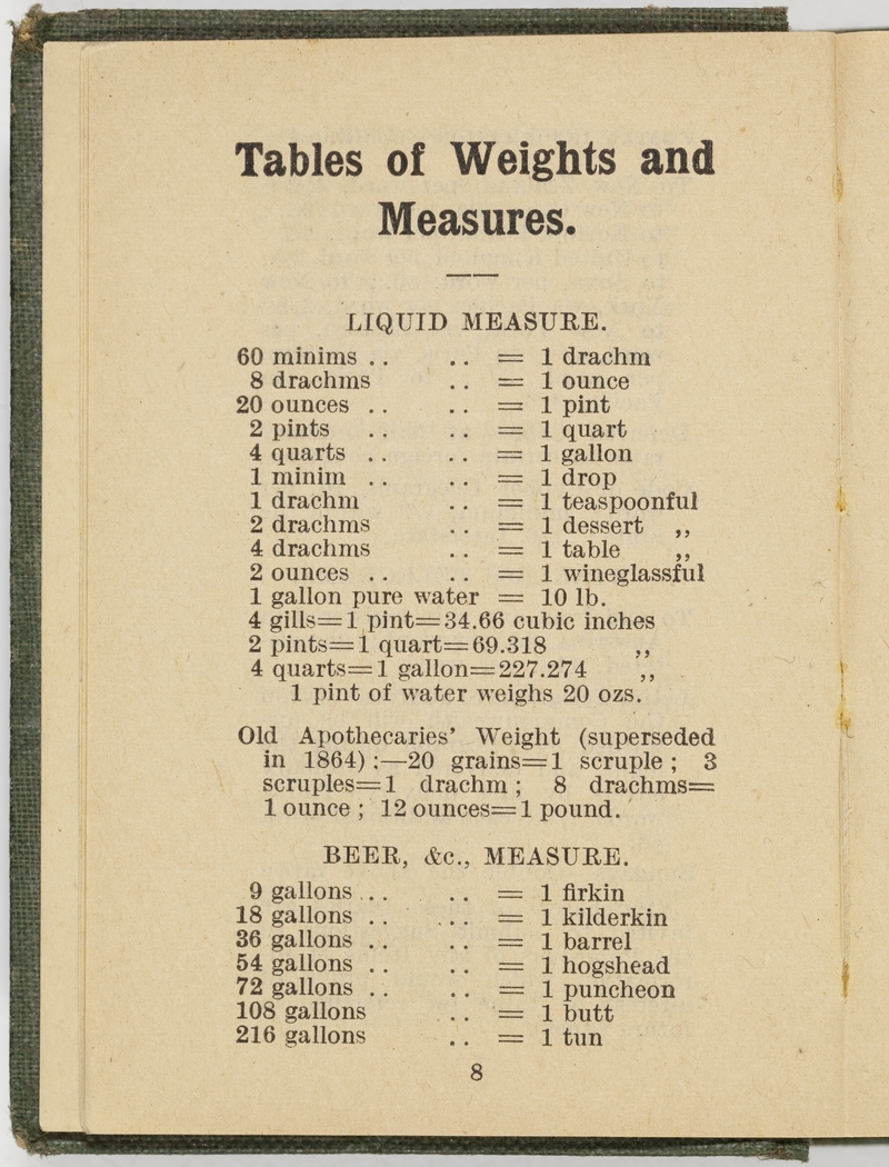 | 1 drachm | .. | = | 1 teaspoonful | |
