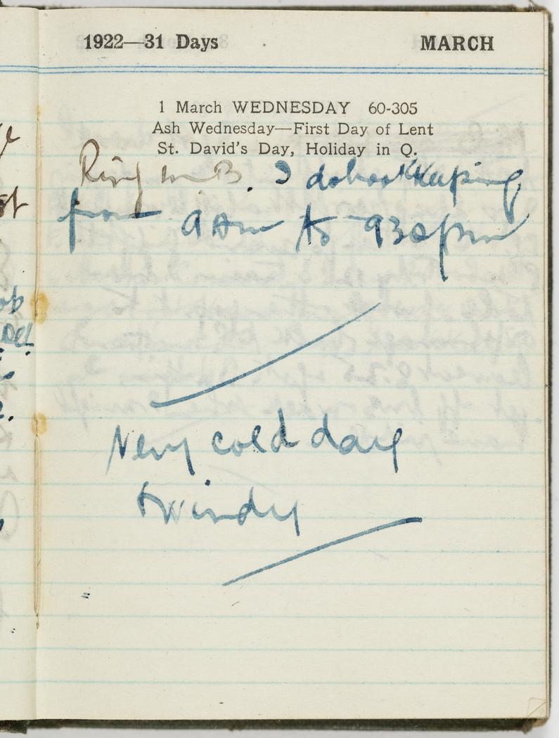 Item 08: Henry Nicholls diary, 1922 - Page 425