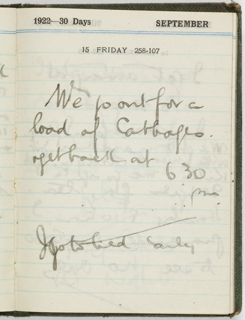 We go out for a load of cabbages. and get back at 6.30 pm. I go to bed early.