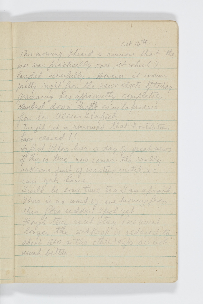 This morning I heard a rumour that the war was practically over. At which I laughed scornfully. However it seems pretty right from the news sheets of today. Germany has apparently completely climbed down chiefly owing to pressure from her Allies I expect.