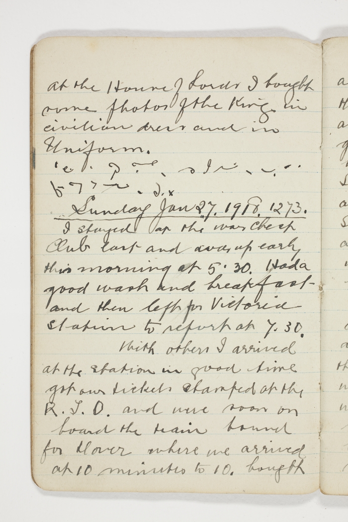 I stayed at the War Chest Club last and was up early this morning at 5.30. had a good wash and breakfast and then left for Victoria Station to report at 7.30.