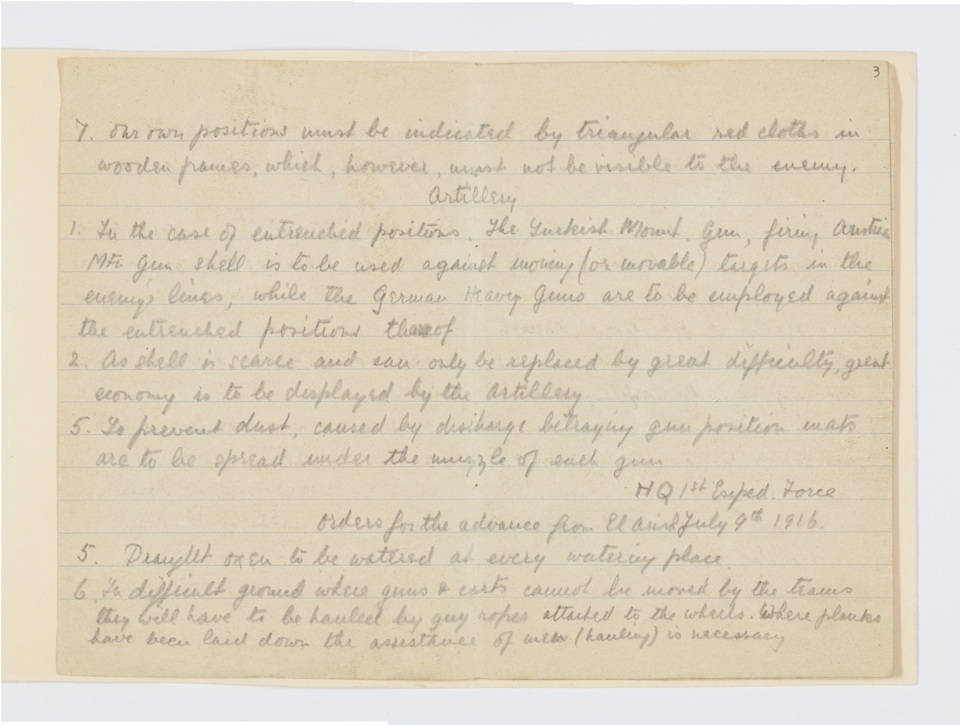 Orders for the advance from El Arish July 9th 1916