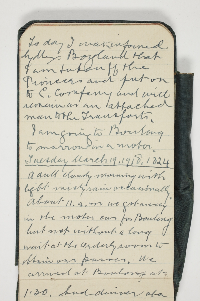 Today I was informed by Maj Boyland that I am taken off the Pioneers and put on to C. Company and remain as an attached man to the Transports.