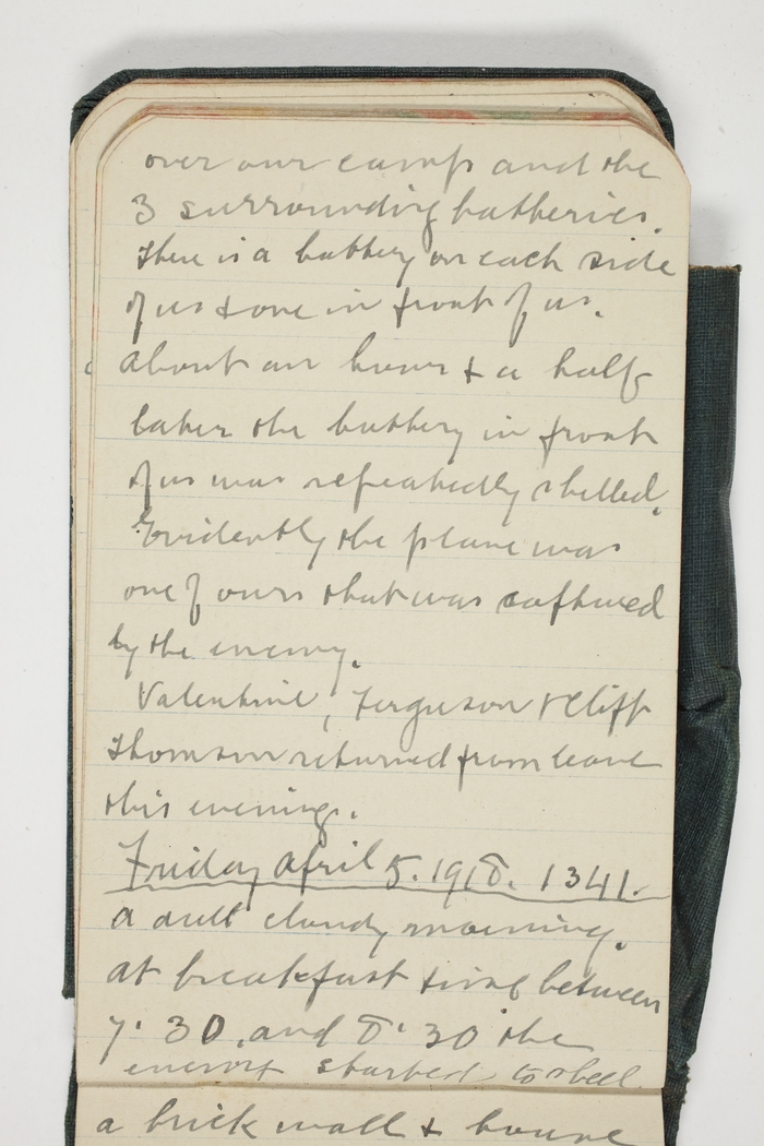 About an hour & a half later the battery in front of us was repeatedly shelled. Evidently the plane was one of ours that was captured by the enemy.