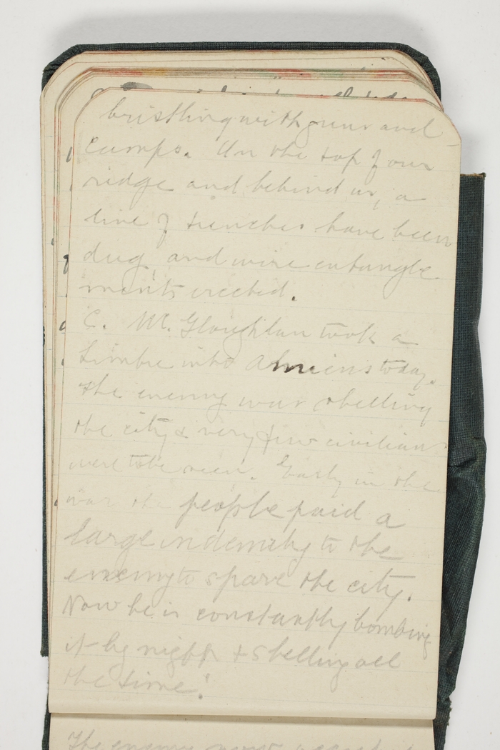 C. McGloughlan took a Limbre into Amiens today. The enemy was shelling the city & very few civilians were to be seen. Early in the war the people paid a large indemnity to the enemy to spare the city. Now he is constantly bombing it by night & shelling all the time.