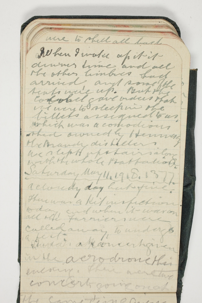 When I woke up it it dinner time and all the other limbres had arrived, and some of the tents were up. But the Colonel gave orders that we were to sleep in the billets assigned to us, which was a comodious shed owned by Hennessy the Brandy distillers.