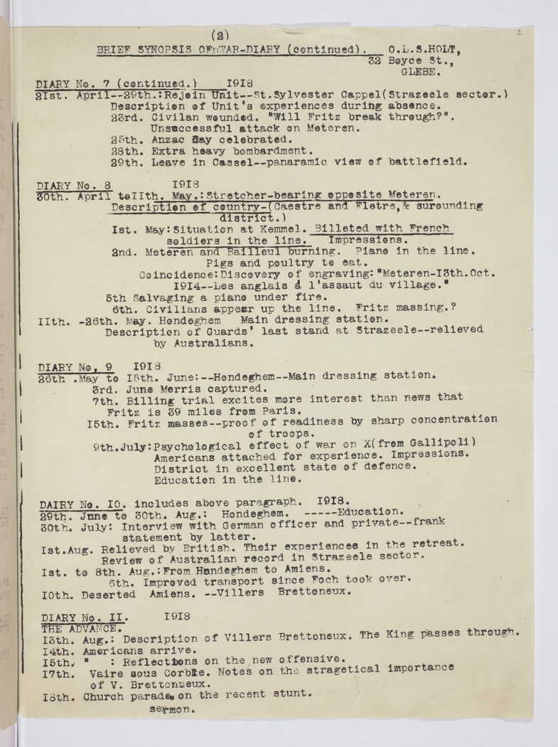 BRIEF SYNOPSIS OF WAR-DIARY (continued).