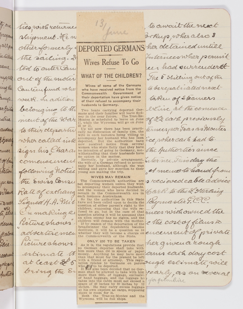 Two boats carrying deported germans and their families will leave Sydney in the near future. The Tras-Esmontes is schudled to leave on June 17 while the Wyreema will go on June 23 or 25.