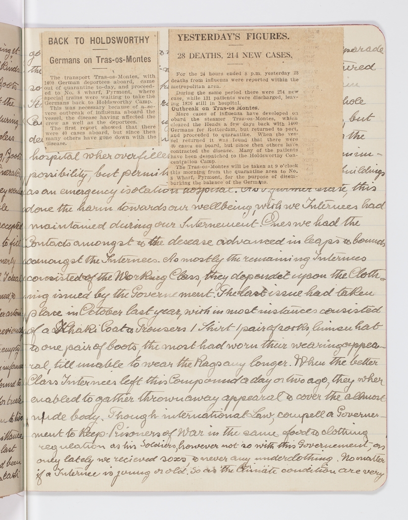 More cases of influenza have developed on obard the steamer Tras-os-Montes, which cleared the Heads a few days back with 1400 Germansfor Rotterdam, but returned to port, and proceeded to Quarantine. When the vessel returned it was found that there were 40 cases on board, but since then others have contracted the disease. Many of the patients have been despatched to the Holdsworthy Concentration Camp.