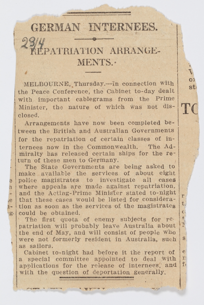 Item 13: Frank W. Bungardy narrative of life in Holsworthy Internment Camp, ca. March-December 1919 - Page 44