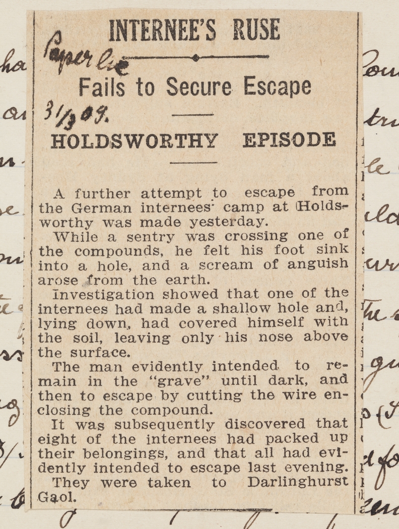 A further attempt to escape from the German internees camp at Holdsworthy was made yesterday.