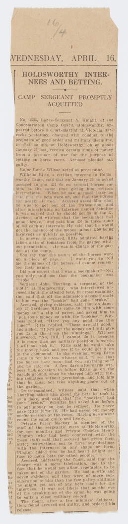 Item 13: Frank W. Bungardy narrative of life in Holsworthy Internment Camp, ca. March-December 1919 - Page 65