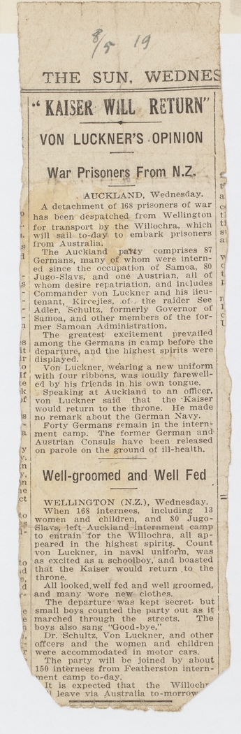Item 13: Frank W. Bungardy narrative of life in Holsworthy Internment Camp, ca. March-December 1919 - Page 101