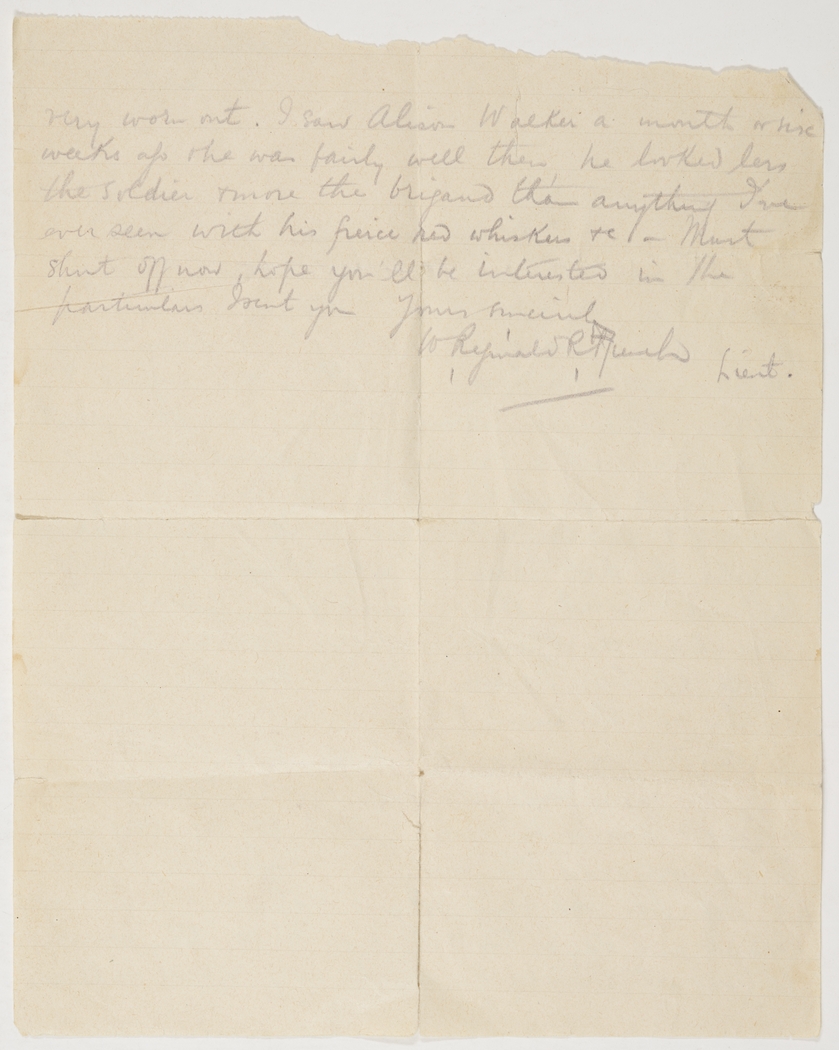 very worn out. I saw Alison Walker a month or six weeks ago & he was fairly well then, he looked less the soldier & more the brigand than anything I've ever seen with his fierce red whiskers &c. Must shut off now, hope you'll be interested in the particulars I sent you.