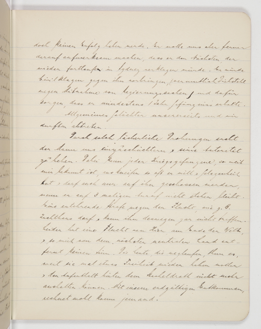 could not possibly succeed. He wanted to alert us nonetheless that he would press charges in Sydney against the next one who tried to abscond. He would bring an action against him (supposedly for theft of government property) and make sure he would be copping at least