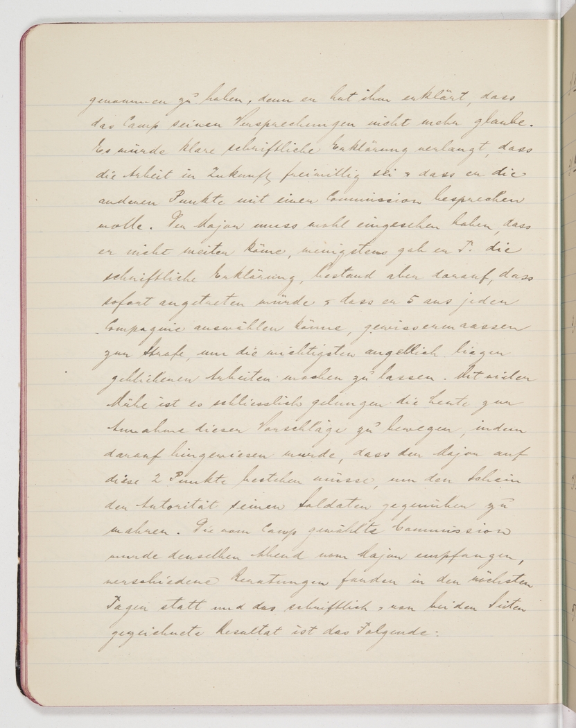 lose face with his soldiers. The committee elected by the camp was received by the Major that same evening, and various consultations and deliberations took place in the ensuing days, ending in a written statement signed by both sides, as follows: