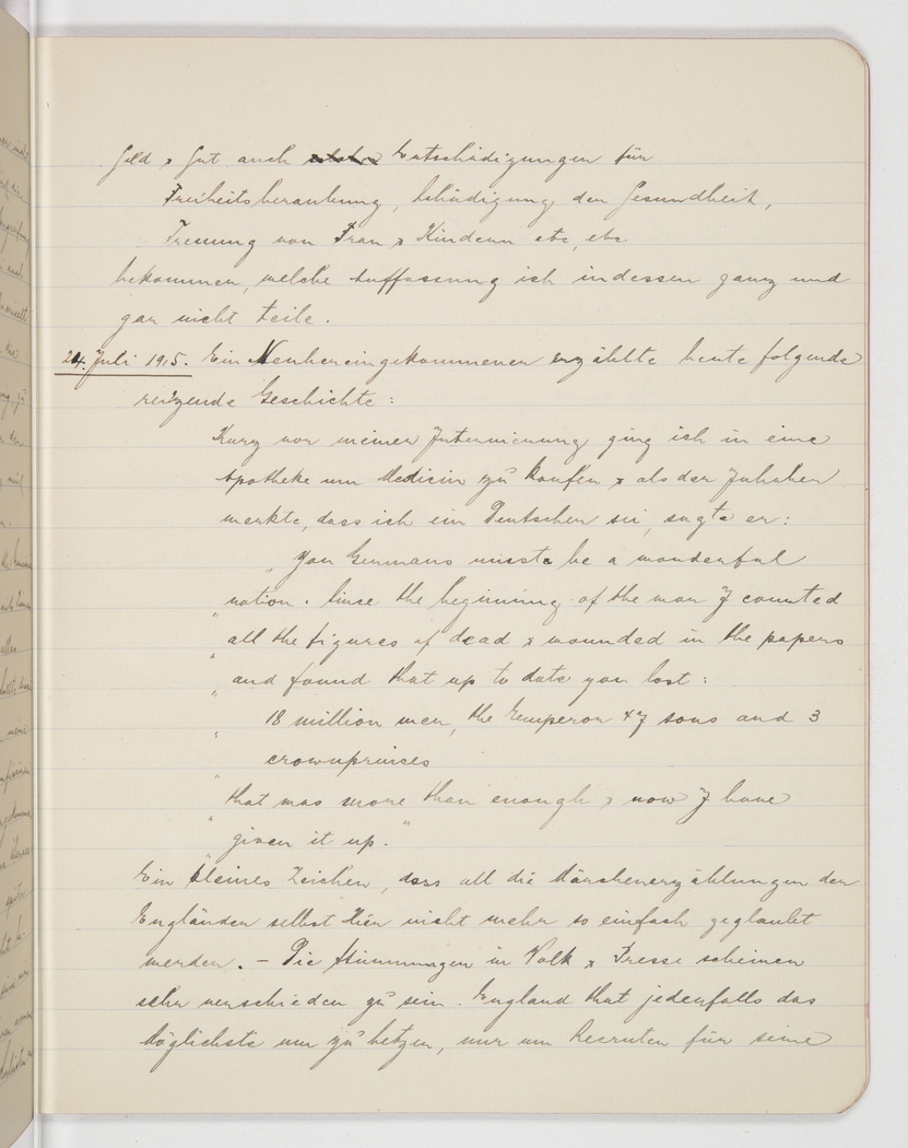 “You Germans must be a wonderful nation. Since the beginning of the war I counted all the figures of dead and wounded in the papers and found that up to date you lost:
