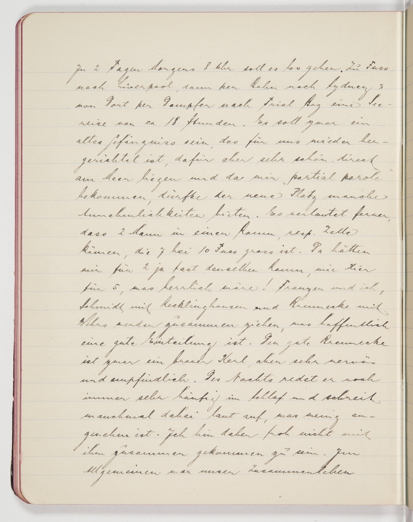 Departure is in 2 days, at 8am. On foot to Liverpool, by train to Sydney and then by steamer to Trial Bay, a sea voyage of about 18 hours. It’s said to be an old prison that was refurbished for us, but a very beautiful one. It’s right on the water, and since we’ll be on