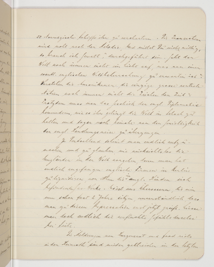 In Germany, at last, they seem to wise up to England’s ruthless actions, because they have finally begun to liquidate English companies in Berlin, especially the English- controlled utilities. It is unfathomable to us expatriates, imprisoned for alm ost 2 years, that they would only now opt for this reprisal. If they could just finally put aside their sentimentalities.