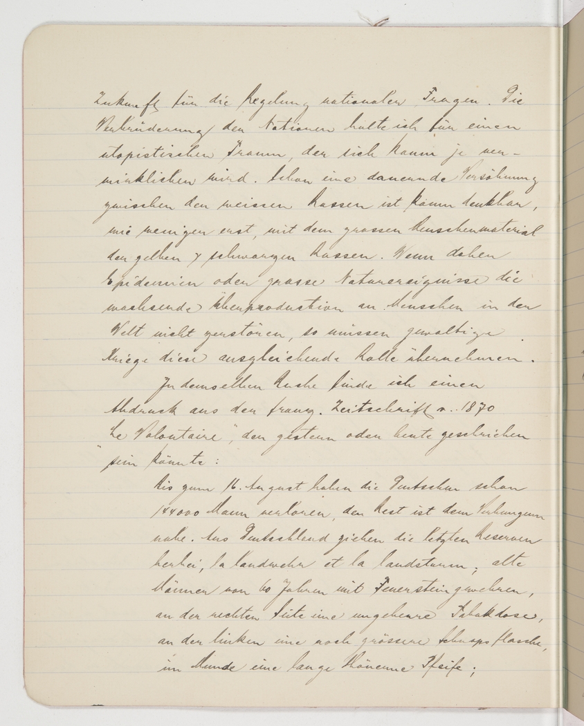 and will be so in future when it comes to preserving the national interest. I deem the brotherhood of nation a complete utopia, a dream that will never come true. Even among the white races a lasting reconciliation is hardly conceivable, let alone with the immense human material [sic] of the yellow and black races. If epidemics or major natural catastrophes can’t dent the growing overpopulation, then major wars will have to do the balancing.