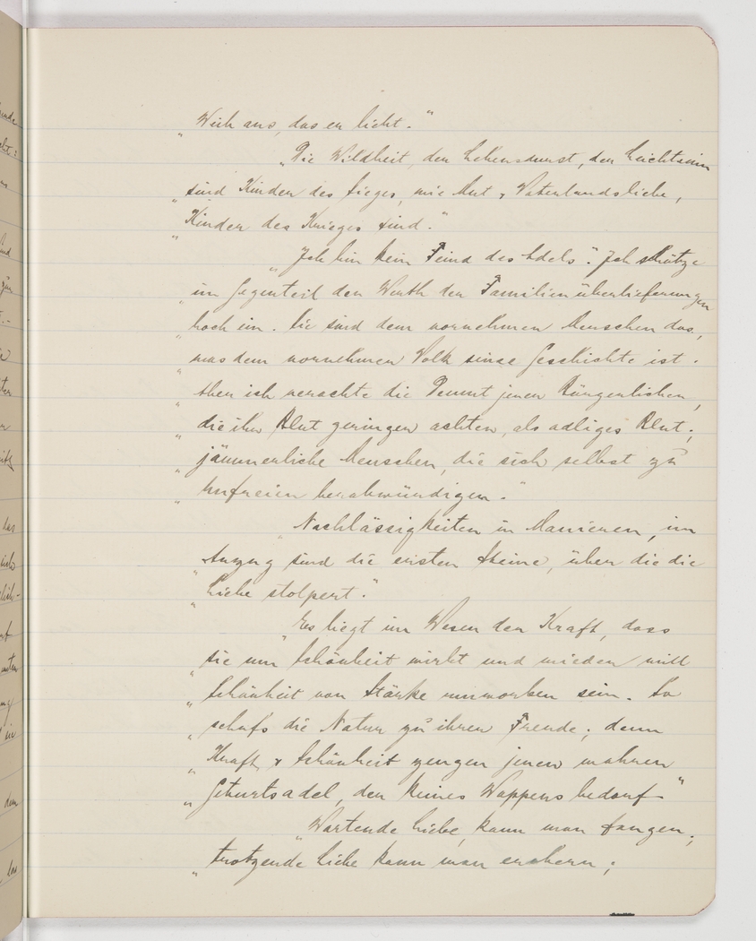 ‘’It’s the nature of strength to woo beauty, as beauty wants to be wooed by strength. Thus nature created its own ideal, because strength and beauty attest to true nobility, a nobility that doesn’t need a coat of arms.’’