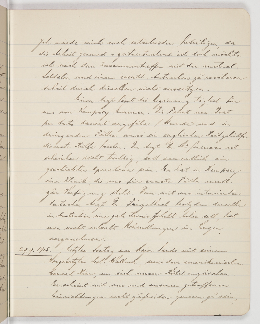 29/9/1915. Last Sunday, Major Sands came with his superior, Col. Wallack, and the American consul to inspect our hotel. He seemed to be quite pleased with us and the arrangements we made,
